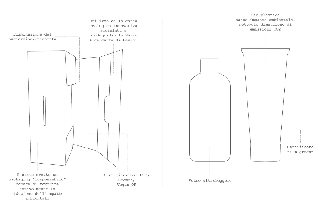 Nos boîtes sont fabriquées en papier écologique et biodégradable à base d’algues Shiro, qui est recyclé selon un procédé innovant. Fabriqué à partir d’algues récoltées dans la lagune de Venise, ce papier est également certifié FSC. Nous avons adopté cette approche d’une part en raison du caractère novateur du produit et, d’autre part, pour rendre hommage à Venise : une ville symbole de beauté, qui n’est qu’un exemple des nombreuses merveilles pour lesquelles l’Italie est connue dans le monde entier. De plus, aucun vernis ni point de colle n’est utilisé dans la fabrication de nos boîtes, le dépliant a été éliminé et l’emballage lui-même a été transformé en une surface entièrement inscriptible qui fournit toutes les informations nécessaires.